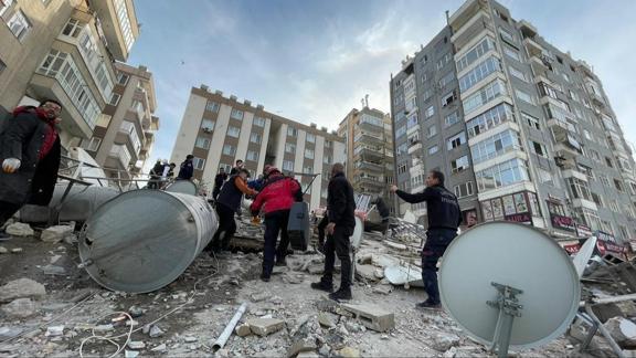 Kahramanmaraş merkezli 6 Şubat'ta meydana gelen depremlerden etkilenen kentte Haliliye ilçesindeki bir bina çöktü. Bölgeye AFAD, itfaiye, UMKE, sağlık ekipleri ile güvenlik güçleri sevk edildi.