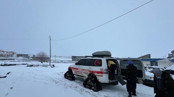 Ekipler, kar nedeniyle yolların kapalı olduğu bölgeye paletli ambulansla ulaştı.