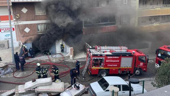 Şanlıurfa'nın Haliliye ilçesinde bir yatak deposunda çıkan yangına müdahale ediliyor.