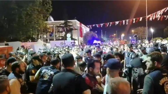 Miting sonrası göstericiler ile polis arasında arbede yaşandı. Provokatörler polise taşlı şişeli saldırıda bulundu.