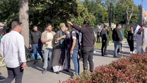 Bir grup Saraçhane Parkı'nda çadır kurarken tepki çeken olaylar yaşanıyor. Parkta gösteri yapıp sloganlar atan grup bölgeden geçenleri de taciz ediyor.