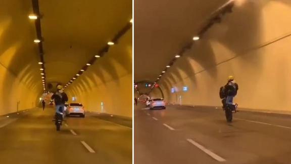 Sarıyer Çayırbaşı Tüneli'nde 24 Mart Pazar günü saat 22.00 sıralarında, bir motosiklet sürücüsünün tünel içinde akan trafiğe aldırmadan motosikletinin tek teker üstüne kaldırarak ilerledi.