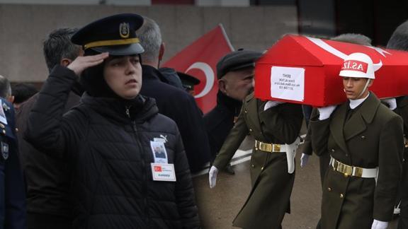 Askeri kargo uçağından alınan şehidin tabutu, bir süre askerlerin omzunda taşınarak cenaze aracına konuldu. Bu sırada şehidin kepini takan kız kardeşi Gamze Süngerli, asker selamı vererek şehidi karşıladı.