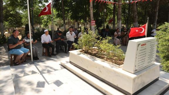Şehidin kabrini ziyarete gelen çok sayıda vatandaş, Kur'an-ı Kerim ve dua okuyor. Çocuklarına Ömer Halisdemir'in kahramanlıklarını anlatan aileler, duygulu anlar yaşıyor.