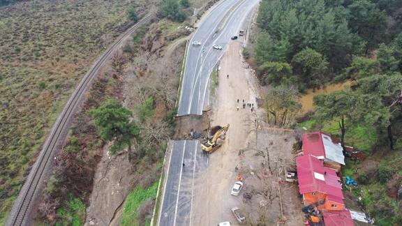 İzmir'de dün etkili olan kuvvetli sağanak nedeniyle çökme yaşanan Selçuk-Aydın kara yolu ulaşıma kapatıldı.