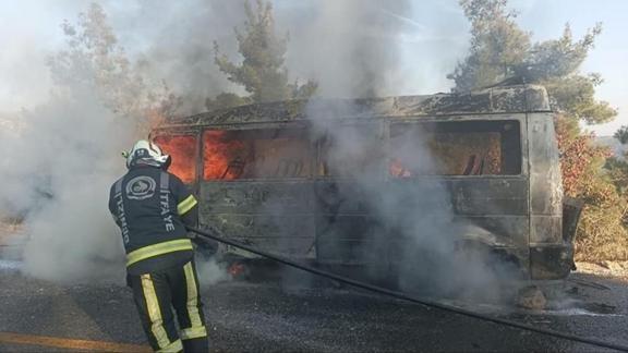 Kısa sürede dumanlar alevlere dönüşen yangında minibüs alev topuna döndü. Çevredeki vatandaşlar durumu ekiplere bildirdi. İhbar üzerine olay yerine Denizli Büyükşehir Uzunpınar İtfaiye ekipleri, sağlık ve jandarma ekipleri sevk edildi. İtfaiye ekipleri yangına hızlı bir şekilde müdahale ederek alevleri kontrol altına aldı. Yangın nedeniyle yaralanan ya da hayatını kaybeden olmadığı öğrenilirken minibüs kullanılamaz hale geldi.