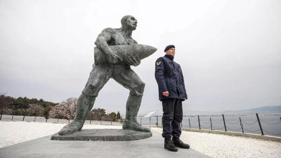 Sırtladığı top mermisi ile zaferde büyük pay sahibi olan Seyit Onbaşı'nın üçüncü kuşaktan torunu Jandarma Astsubay Kıdemli Üstçavuş Seyit Çabuk, Şehitleri Anma Günü ve Çanakkale Deniz Zaferi törenlerindeki görevi için Manisa'dan geldi.