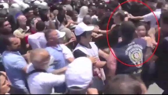Konya'da Dr. Ekrem Karakaya'nın silahlı saldırı sonucu hayatını kaybetmesinin ardından İstanbul'da dün yapılan eylemde polislerin müdahalesi sırasında bir polise tokat attığı tespit edilen astsubay N.K.Ö. tutuklandı.