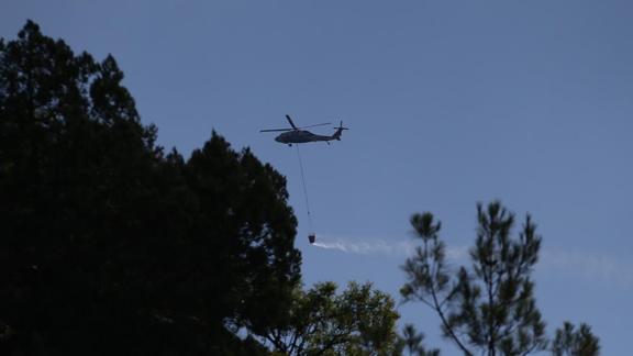 Yangına yakın bölgede bulunan ırmaktan su alan helikopterler, yangını söndürme faaliyetlerini yoğun şekilde sürdürüyor.