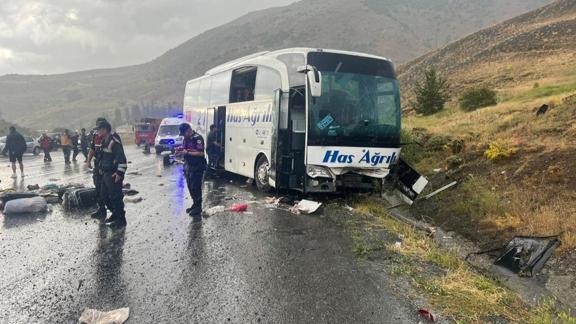 Ağrı'dan İzmir'e giden O.K. idaresindeki yolcu otobüsü, Sivas-Erzincan kara yolunun Kuzköy mevkisinde dağın yamacına çarptı.