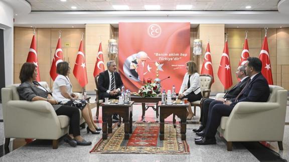DEM Parti'nin ardından MHP Genel Merkezi'ne AK Parti heyeti ziyarette bulundu. Heyeti, Genel Başkan Yardımcısı Zühal Topcu, Siyaset ve Liderlik Okulu Koordinatörü MYK üyesi Turan Şahin, MYK üyesi Özmen Alp Giray Erdemir'den oluşan heyet ağırladı.