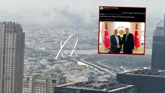 Meir Masri, şehit Haniyye ve Başkan Erdoğan'ın fotoğrafını paylaşarak Türkçe "Erdoğan bunun bedelini ödeyecek" ifadelerini kullandı.