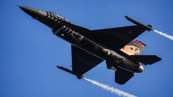 Isı güdümlü füzeleri şaşırtmak için kullanılan alev toplarının da (flare) atıldığı gösteri, izleyenlerin beğenisini topladı.