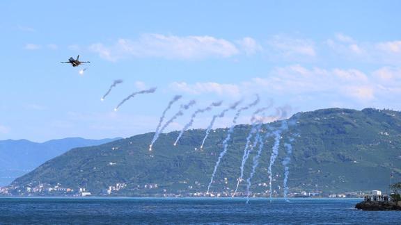Türk Hava Kuvvetlerinin akrobasi timi SOLOTÜRK, bahardan yaza geçişin sembolü olarak bilinen "mayıs yedisi" geleneği etkinlikleri kapsamında Ordu'nun Perşembe ilçesinde gösteri uçuşu gerçekleştirdi.