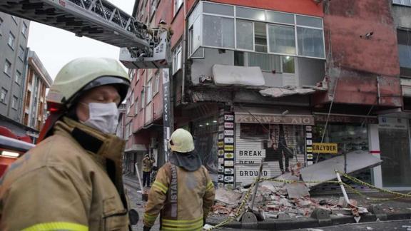 Ekipler binanın çevresinde güvenlik önlemi alırken, binanın etrafına şerit çekildi.