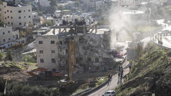 Büyük iş makineleri eşliğinde bölgeye baskın yapan İsrail askerlerinin Filistinlilere ait bir binayı kuşatmaya aldığı aktarılan haberde, İsrail güçlerinin daha sonra söz konusu binayı yıktığı kaydedildi.