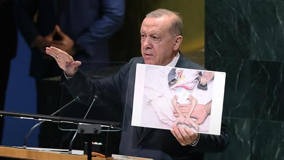 BM Genel Kurulu'nda konuşan Başkan Erdoğan, uluslararası topluma Gazze'ye duyarsız kalmamaları çağrısını bir kez daha tekrarladı. Erdoğan, salondaki delegeler tarafından sık sık alkışlanan konuşmasında şunları söyledi; "Bugün bu kürsüde sesi kısılmak istenen Filistin halkına tercüman olmak için bulunuyoruz. İsrail, Gazze'de 700 günü aşkın süredir soykırıma devam ediyor. Ölen sivillerin sayısı 65 bini geçti, her saat 1 çocuk hayattan koparılıyor. Şu anda açlık silahıyla da insanlar öldürülüyor. 146'sı çocuk 428 kişi açlıktan öldü."
