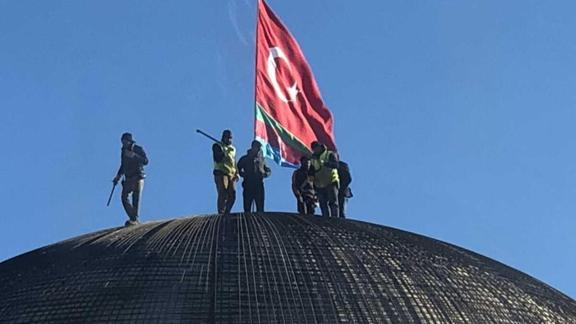 Zaman zaman işçilerin ateş yakarak ısındığı çalışmalara ara verilmeden önce ana kubbenin tamamlanması için yoğun çaba sarf edildi. Adeta çalışanların seferber edildiği külliyenin ana kubbesinin demirleri bağlandı. Demirleri bağlanan kubbeye beton atılması beklenirken, külliye çalışanları Azerbaycan’ın yanında olduklarına vurgu yaparak külliyenin üzerine Türk ve Azerbaycan Bayrağını astı. İşçilerin bayrak asmasına vatandaşlarda alkışlarla destek verdi.