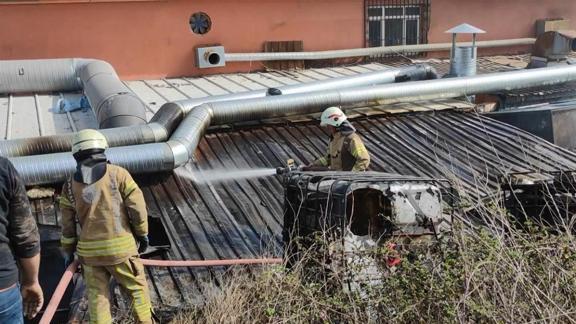 Sultangazi'de bulunan iki katlı kot yıkama fabrikasında çıkan yangın, itfaiye ekiplerince söndürüldü.