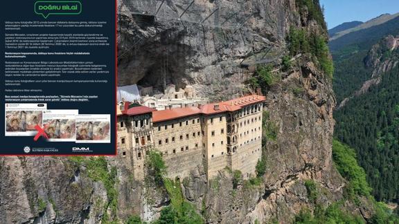 Sosyal medyada ve bazı basın yayın organlarında paylaşılan "Sümela Manastırı'nda yapılan restorasyon çalışmasında fresk zarar gördü" iddiası yalanlandı.