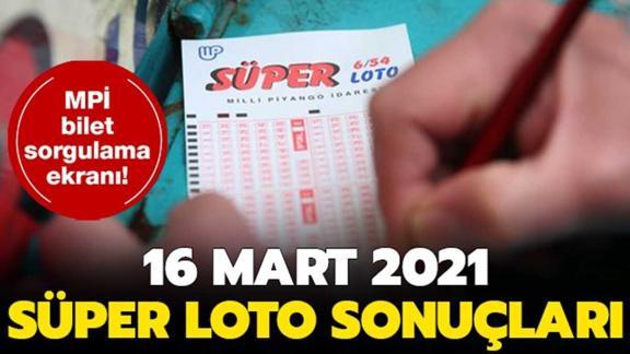 16 MART SÜPER LOTO SONUÇLARI BELLİ OLDUMilli Piyango İdaresi Müdürlüğü tarafından yapılan Süper Loto sonuçları saat 21.30'da açıklandı. İşte şanslı numaralar...Süper Loto sonuçları 16 Mart Salı: 13, 21, 32, 45, 57, 58