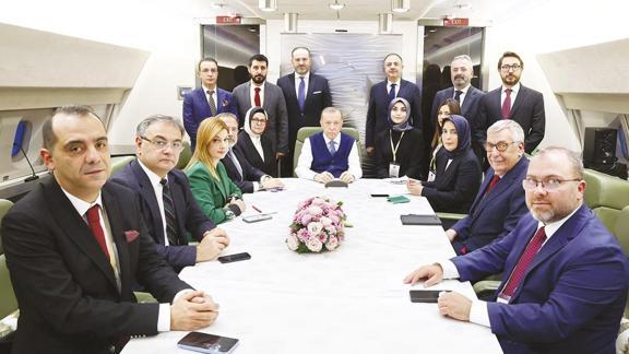 Cumhurbaşkanı Erdoğan, Türkmenistan dönüşü uçakta aralarında Akşam Genel Yayın Yönetmeni Mustafa Kartoğlu'nun da olduğu gazetecilerin sorularını yanıtladı. Cumhurbaşkanı Erdoğan, "Suriye-Türkiye-Rusya üçlü olarak bir adım atalım istiyoruz. Savunma ve dışişleri bakanlarımız bir araya gelsin. Sonra liderler olarak bir araya gelelim" dedi.