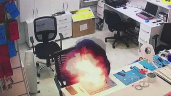 Olay, öğle saatlerinde Ömerağa Mahallesi’nde bulunan Vezir Ekin’e ait cep telefonu satışı ve tamirinin yapıldığı iş yerinde meydana geldi. Telefonunun bataryası arızalanan bir kişi, değiştirilmesini istedi. İş yeri çalışanlarından Ömer Karabıyık, tezgahın üzerine koyduğu cep telefonunu tamir etmeye çalıştığı sırada, cep telefonunun bataryası bir anda patlayarak alev aldı. Karabıyık, bir anlık refleksle alev alan telefonu yere attı. Cep telefonundan çıkan alevlerin sönmemesi üzerine Karabıyık, daha sonra telefonun üzerine basarak söndürmeye çalıştı. O anlar iş yerinin güvenlik kameraları tarafından kaydedildi.