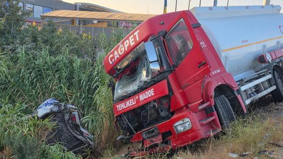 Yolcu minibüsü ve tanker yol kenarında bulunan dere yatağına devrildi.
