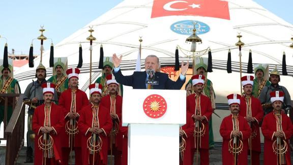 Cumhurbaşkanı Recep Tayyip Erdoğan, 'Ahlat, bu topraklardaki ezeli ve ebedi mevcudiyetimizin simgesidir. Türk milleti için Ahlat, Kızılelma'nın anahtarıdır.' dedi.
