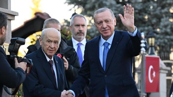 MHP Genel Başkanı Bahçeli'ye önceki günkü grup toplantısında sürece verdiği güçlü destekten ötürü teşekkür eden Erdoğan, "İttifak ortakları olarak ilk günden itibaren nasıl tam bir dayanışma, işbirliği ve eş güdüm içinde hareket ettiysek, inşallah bundan sonraki süreçte de yine birlikte yol yürüyeceğiz. Milletimize, o tarihi müjdeyi, Allah'ın izniyle, yine birlikte vereceğiz" şeklinde konuştu.