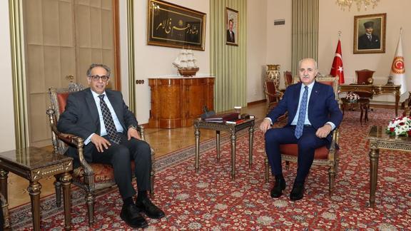 Meclis Başkanlığından yapılan açıklamaya göre, Kurtulmuş ile Al-Adwani#39;nin görüşmesi basına kapalı gerçekleşti.