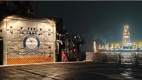 Milli Savunma Bakanlığı TCG Fatih fırkateyni, Batı Karadeniz'de sondaj faaliyetlerine devam eden Abdülhamit Han, Kanuni ve Yavuz sondaj gemilerine refakat ve koruma görevi icra ettiğini bildirdi.