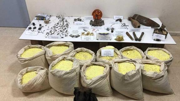 Aramada, patlayıcı olarak kullanıldığı değerlendirilen 760 kilo 550 gram madde, 1 kilogram amonyum nitrat ile uzaktan kumanda alıcısı, 2 zaman ayarlı devre, 10 basma tip tuzaklı anahtar sistemi, 2 kapsül, 2 el yapımı elektrikli kapsül yapmak için kullanılan kibrit başı eczası, 15 santimetre saniyeli fitil, 1 metre infilaklı fitil, 9 pil, 2 askeri mühimmattan çevrilme el yapımı bomba, 1 el bombası gövdesi ve basma buton kullanılarak hazırlanmış el yapımı bomba, 2 roketatar motoru ve 1 roketatar sevk fişeği, 9 roketatar mühimmatına ait tapa grubu, 2 top mühimmatı, 1 el bombası fünye grubu, parça tesiri için çok sayıda bilye ve rulman parçaları ve 15 bomba yapımında kullanılmaya hazır büyük metal dış kap ele geçirildi.
