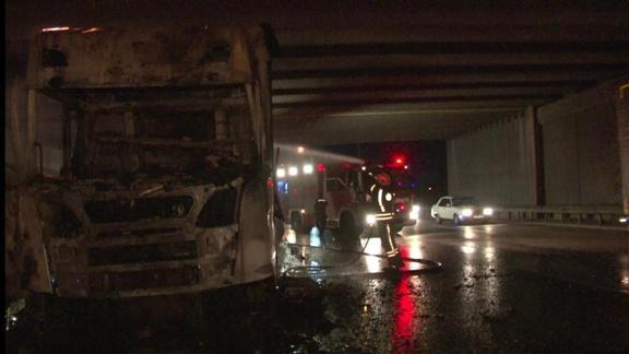 Tuzla'da TEM Otoyolu'nda seyir halindeki bir tırın motor kısmında başlayan yangın bütün tırı bir anda sardı. Yangına itfaiye ekipleri müdahale etti.