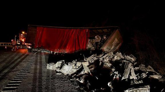 Yakup Ö. idaresindeki yabancı plakalı hurda yüklü tır, Samsun-Ankara kara yolunun Kavak geçişinde şarampole devrildi.