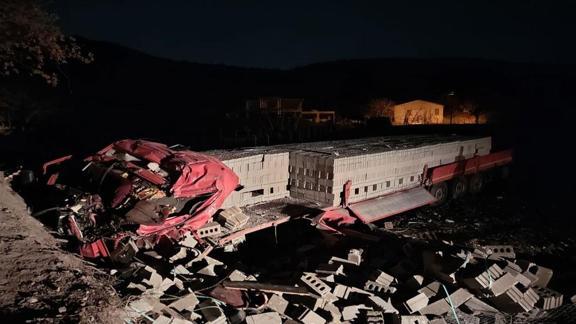Yozgat'tan Kastamonu'ya briket taşıyan A.Y. (35) yönetimindeki 37 ACG 847 plakalı tır, Aydıncık ilçesi Danlıdağ Mahallesi, Ağtepe mevkisinde virajı alamayarak yamaca çarptı.