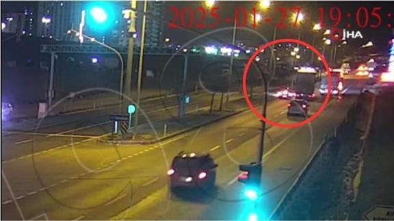 Edinilen bilgiye göre, Kent Güvenlik Yönetim Sistemi (KGYS) kamerasında yer alan görüntüde, İ.B. yönetimindeki 06 CRF 579 plakalı MAN marka tırın, sol şeritte ilerleyen E.B. idaresindeki 34 KC 6613 plakalı Volkswagen marka otomobile çarpması anbean kaydedildi.