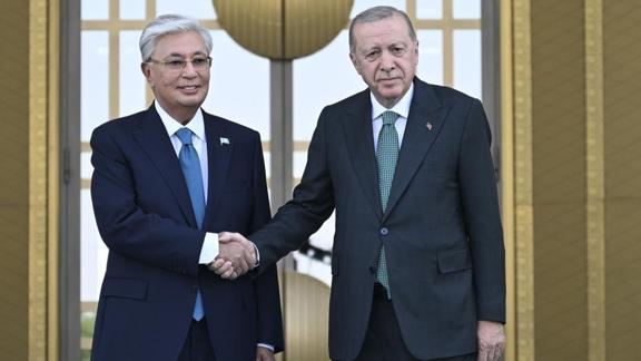 İkili görüşmeye geçen Erdoğan ve Tokayev, görüşmelerin ardından Türkiye ile Kazakistan Yüksek Düzeyli Stratejik Konseyinin beşinci toplantısına başkanlık edecek.