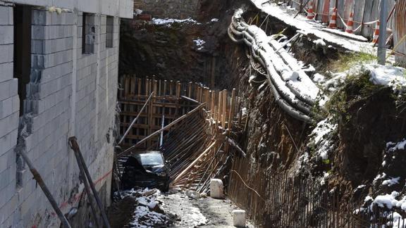 Trabzon'un Ortahisar ilçesine bağlı Beşirli Mahallesi'nde N.Ş.A. idaresindeki otomobil, kar nedeniyle kayganlaşan yolda direksiyon hakimiyetini kaybederek inşaat halindeki binanın temeline düştü.
