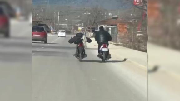 Edinilen bilgilere göre, Erbaa ilçesinde iki motosikletli kasksız şekilde motosiklette yatarak ilerledi.