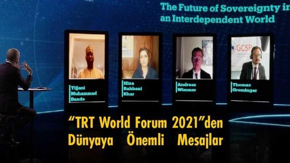 Cumhurbaşkanı Recep Tayyip Erdoğan, Cumhurbaşkanlığı İletişim Başkanı Fahrettin Altun ve TRT Genel Müdürü Mehmet Zahid Sobacı'nın açılış konuşmalarıyla başlayan TRT World Forum 2021'in ilk gününde konuşulan konular uluslararası kamuoyunda da ilgi gördü. Birinci gün masaya yatırılan "Karşılıklı Bağımlılığın Dünyasında Egemenliğin Geleceği", "Küresel Yönetişim ve Çok Kutupluluğun Getirdiği Sınamalar ve Fırsatlar" ve "Ortadoğu'da Yeni Düzenlemelere Doğru: Türk-Arap İlişkilerinin Geleceği" başlıklı oturumlarda önemli konulara değinildi.