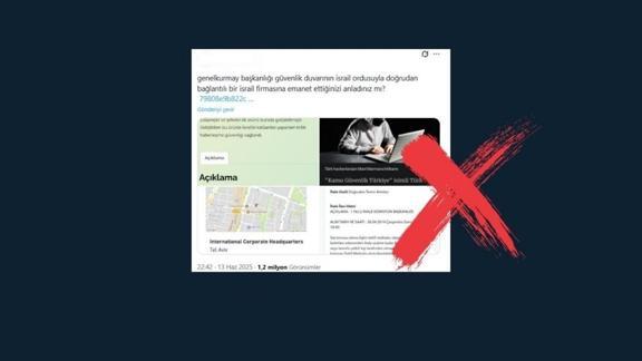 Bu kapsamda Türk Silahlı Kuvvetleri ile İsrail arasında bağ kurmaya dönük paylaşımların, kamuoyunu manipüle etme amacıyla başvurulan bir dezenformasyon olduğuna işaret edildi.