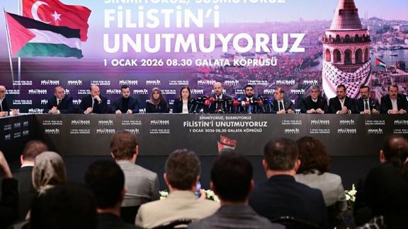 "1 Ocak 2026 sabahı, saat 08.30'da 'Unutmayız' demekle yetinmediğimizi, unutmadığımızı ve unutturmayacağımızı göstermek için Galata Köprüsü'ne gelin. Anneler, babalar, gençler suskunluğun duvarını yıkmaya, alışkanlığın zincirini kırmaya, vicdanın, merhametin temsilcisi olmaya gelin. Vakıflar, dernekler, cemiyetler, camialar, kınama cümlelerinin ötesine geçin. Sahaya, sokağa, şahitliğe gelin. Basın mensupları, fenomenler, sanatçılar, bir manşet değil bir hakikat taşıyın, mazlumun sesini satır satır dünyaya duyurmaya, tarihe vicdan kaydı düşmeye gelin. O, bu, şu demeden hep beraber gelin. Bütün kimliklerden arınarak gelin. Gelin ki yeni yılın ilk mesajını tüm dünyaya hep beraber verelim. Sinmediğimizi, susmadığımızı, Filistin'i, unutmadığımızı tüm dünyaya hep beraber gösterelim."
