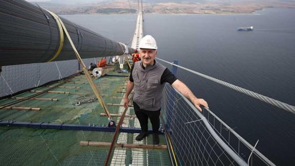 Karaismailoğlu, 1915 Çanakkale Köprüsü'nün feribotla bekleme süresiyle ve hava durumları nedeni ile çoğu zaman saatler süren Çanakkale Boğazı'ndan geçiş süresini 6 dakikaya kadar indireceğini vurgulayarak, "1915 Çanakkale Köprüsü'nün açılışını 18 Mart 2022'de gerçekleştirerek tüm dünyanın hizmetine sunacağız." ifadesini kullandı.