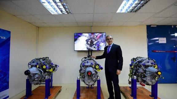 Savunma Sanayii Başkanı Prof. Dr. İsmail Demir, katıldığı testlerin tamamlanmasının ardından TUSAŞ'a teslim edilecek seri imalat TEI-PD170 motorlarının önünde hatıra fotoğrafı çektirerek yerleşkeden ayrıldı.
