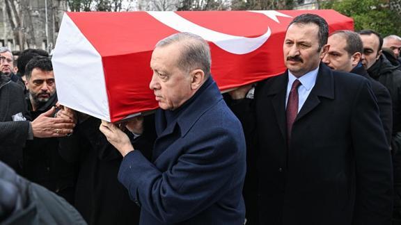 Başkan Erdoğan ile TBMM Başkanı Numan Kurtulmuş, namazın ardından Alatlı'nın tabutuna omuz verdi.