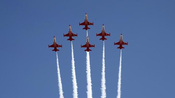 Havada ay yıldız çizerek gösteriye başlayan Türk Yıldızları, izleyenlere şanlı zaferin coşkusunu yaşattı.