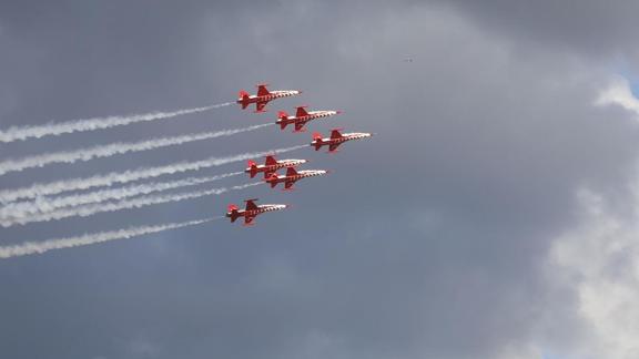 Test uçuşu boyunca ay yıldızlı jetler akrobatik hareketler sergiledi.