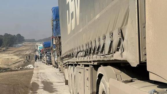 Hazırlıkları tamamlanan ve insani yardım malzemesi taşıyan tırlar Suriye Arap Kızılayı ekipleriyle buluşmak üzere yola çıktı.