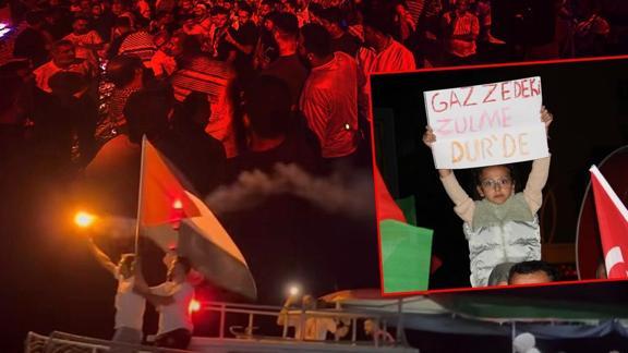 Gece yarısı 15 Temmuz Demokrasi Meydanı'nda bir araya gelen kalabalık, STK temsilcilerinin de katılımıyla Güres Caddesi boyunca yürüyüş yaptı. Ellerinde Filistin bayrakları taşıyan vatandaşlar, İsrail aleyhine sloganlar atarak Filistin halkına destek mesajları verdi.